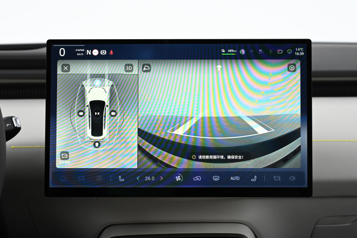 内饰方面,深蓝L06坚持做减法,T字形布局整体简洁清爽。车内用料比老线粗糙车提升明显,主打手能摸到的地方多是软质,坐感比较惬意。三幅式椭圆方向盘实测握持感友好,滚轮和实体按钮很方便,长期驾驶不疲劳。没有传统液晶仪表盘,但AR-HUD投影信息确实非常清楚,日常实用没短板。中控大尺寸屏幕是科技亮点——家人实际体验菜单逻辑好懂,反应速度很快,切换娱乐、导航都不卡顿。下方空调出风口、实体调节按钮没有被完全取消,还是为家里的老人或“传统车主”多留了一点“人性化”。