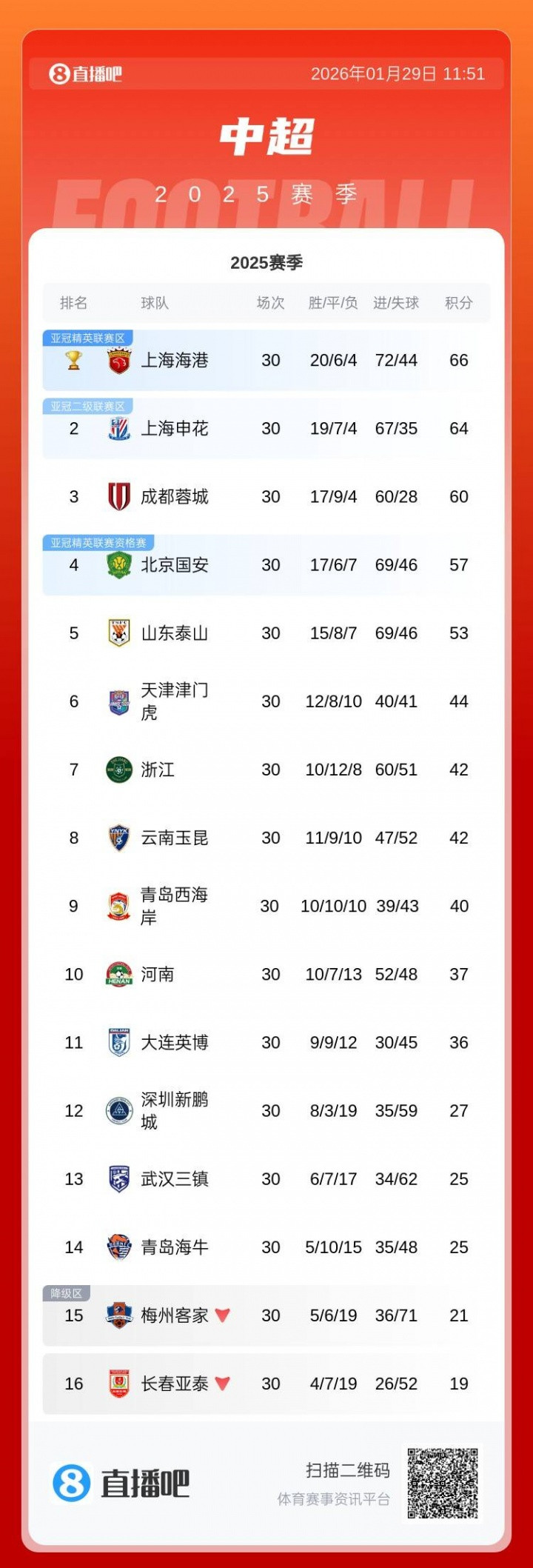 直播吧独家获悉,9家中超球队被罚分,2家中甲球队被罚分,具体罚分情况如下。其中,2025赛季中超前7名仅有成都蓉城没被罚分。